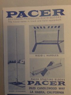 My father started as a small track and field company selling standards and starting blocks he’d developed, hurdles and a few other things (but not poles) in the early 60’s. He named his small track and field line Pacer.